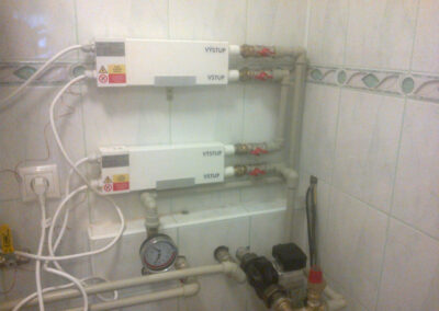 Pri ďalších  testoch sa zistilo, že jedno 2kWh zariadenie ohrieva štyri 1m radiátory na teplotu 40 °C. Ak sa dajú dve zariadenia nad seba do série a spustia sa súčasne tak, že sa na 15 min. zapnú a na 15 min. vypnú, teplota na radiátoroch sa pohybuje od 43 °C do 52 °C a spotreba energie je rovnaká, ako keby bolo v prevádzke jedno zariadenie. Teplota sa zvýši o 15 °C za 15 min, ale za rovnaký čas sa ochladí len o polovicu 7 °C – 8 °C. Tepelný výkon sa zvýšil a spotreba energie zostala rovnaká, takže v konečnom dôsledku, ak vykurujeme 4 miestnosti, máme v tomto prípade nižšiu spotrebu energie ako 2 kWh. Tieto zariadenia stále púšťame len v silnejších mrazoch.