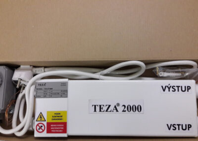 Nové  tepelné zariadenie TEZA® 2000 je určené na vykurovanie priestorov bytov, domov, kancelárií, chát, garáží atď. Vo vykurovacom systéme so zariadeniami TEZA® 2000 doporučujeme použiť oceľové panelové a rebríkové radiátory,pre podlahové kúrenie je tento systém ideálny. Radiátory by mali  zodpovedať výkonovo danej miestnosti a jej rozmerom. Tepelné zariadenie TEZA® 2000 je bezkonkurenčne najlacnejšie, najbezpečnejšie, najspoľahlivejšie a najjednoduchšie riešenie kúrenia.  Náklady na vykurovanie sú porovnateľné ako vykurovanie plynovým kotlom. Tento systém je možné  kombinovať s inými tepelnými zdrojmi. Veľkou výhodou je, že na istenie  tepelných zariadení nám stačí 10 A. TEZA® 2000 má veľmi malé rozmery. Vykurovanie so zariadením TEZA® 2000 je ideálne pre nízkoenergetické domy.