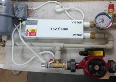 Zariadenie TEZA®2000  bolo navrhnuté ako kompaktná jednotka, ktorá účinne dosahuje rýchle vykurovanie. Prúdiaca voda okamžite ochladzuje zariadenie, pričom tepelná energia sa odovzdáva do systému bez strát. Teplota sa rovnomerne rozkladá medzi všetky radiátory, čo vedie k optimálnemu vykurovaniu s minimálnymi tepelnými stratami.
